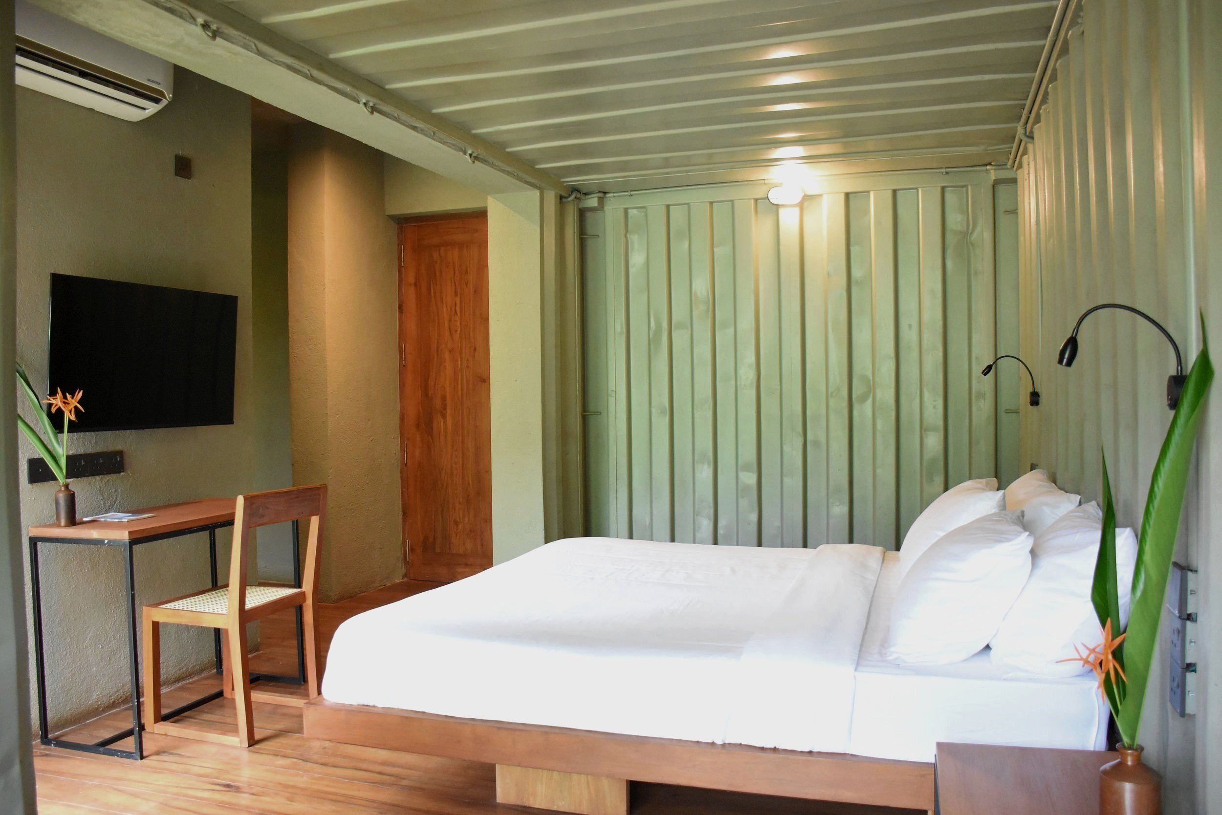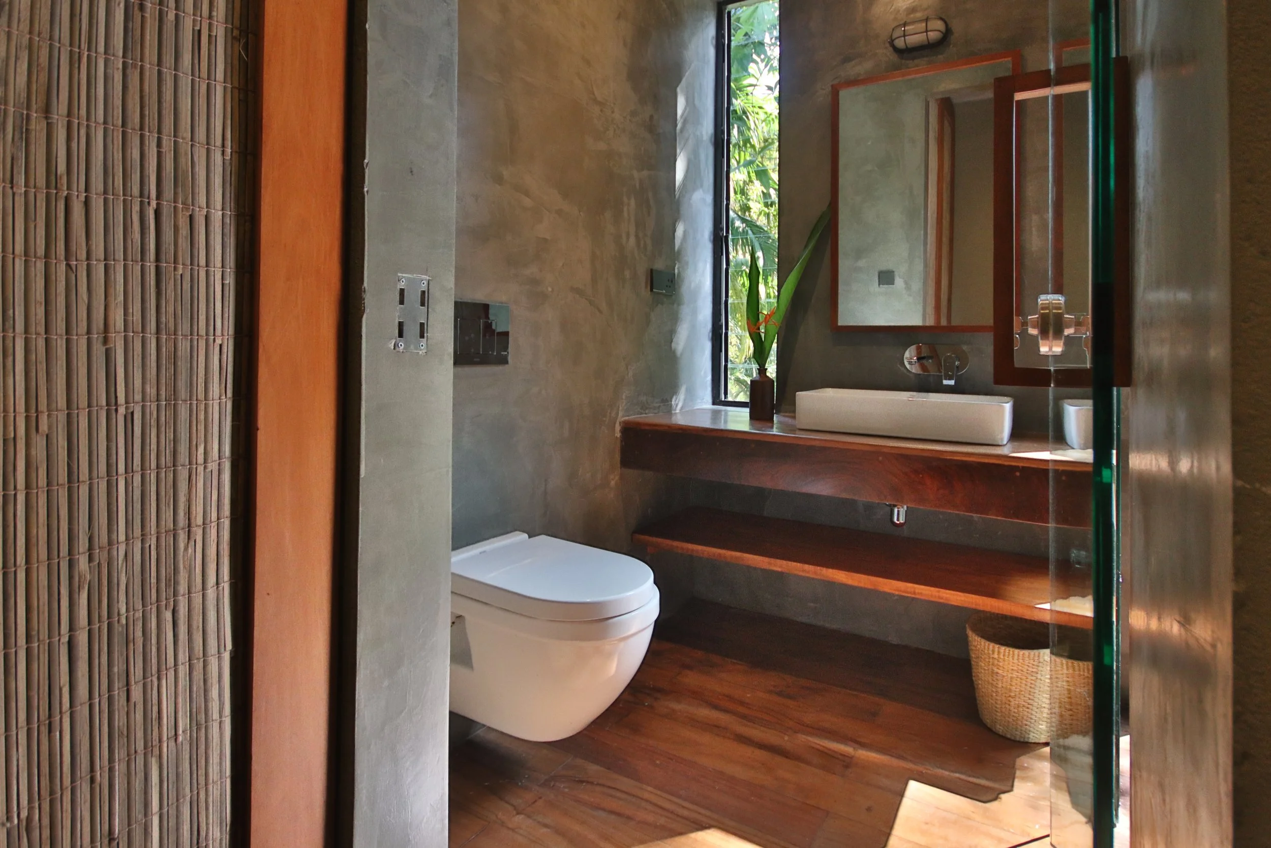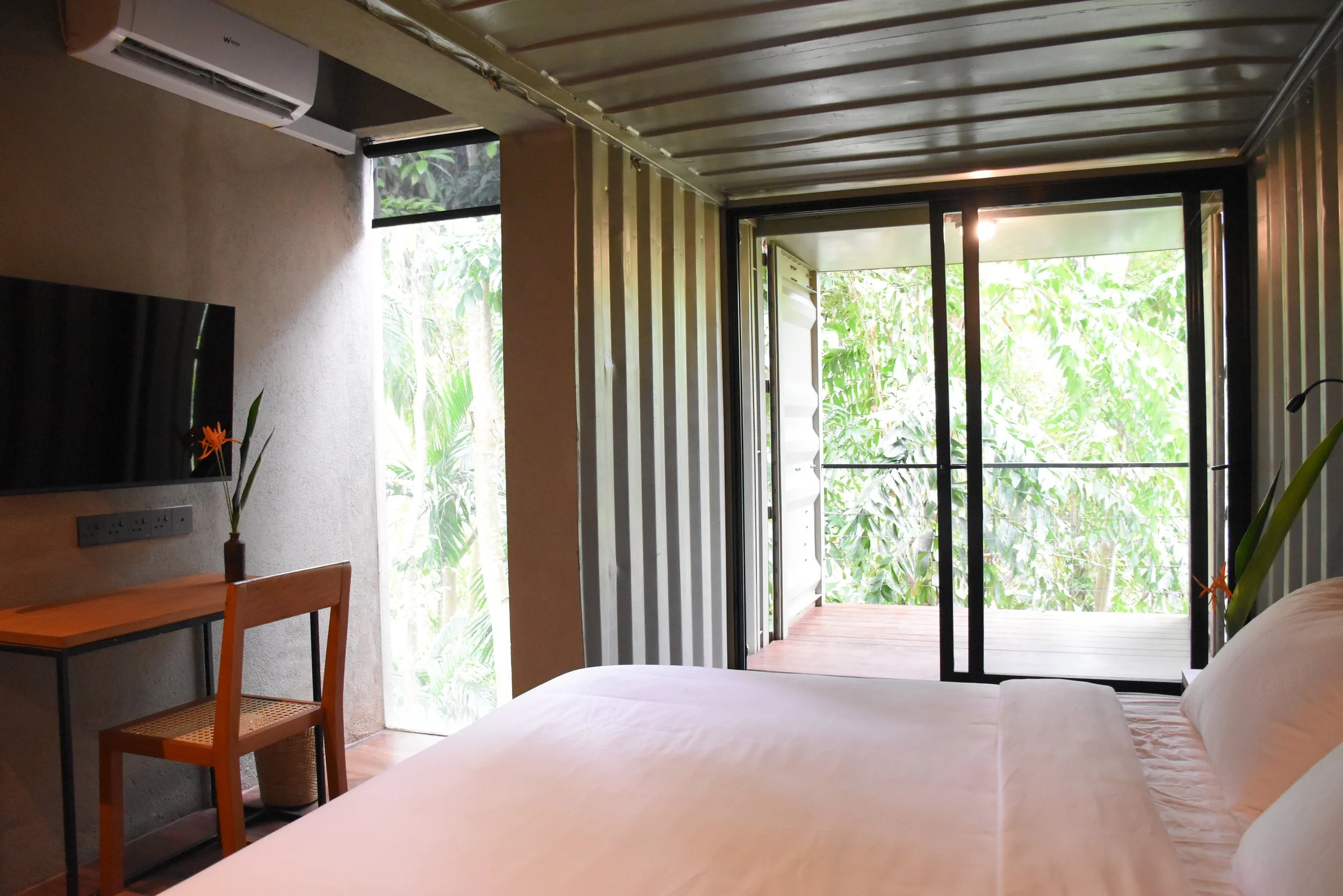 The shipping containers form two out of the four bedrooms. The four bedrooms which are at the lower river level, close to the water provides a magical views of the rainforest strata , tree trunks & undergrowth coupled with the soothing ambient river, a sound that changes with the seasons.